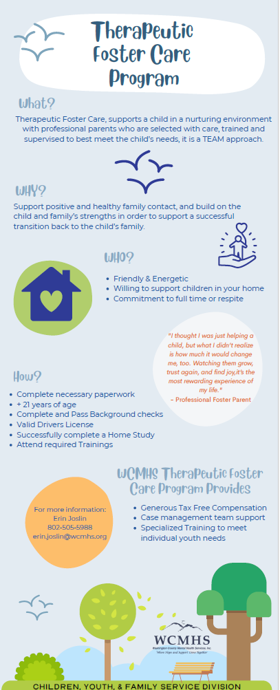 If you are interested in becoming a Home Provider, please contact our Home Provider Recruiter @ 802.479.2502.